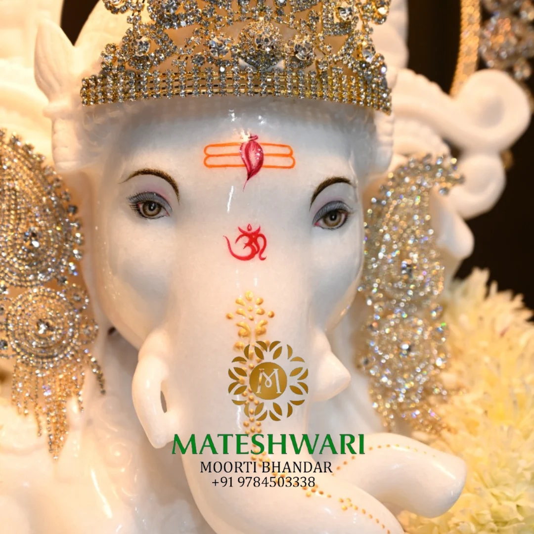Shree Divyaroop White Marble Moorti with Golden Crown & Decor